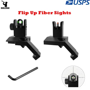 Bugleman Fiber Optics Sights 45 Degree Flip Up Offset Iron Sight Front Rear Red Green Fiber Sights for Picatinny Weaver Rail